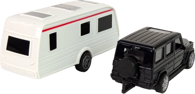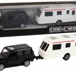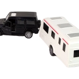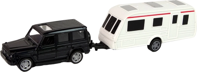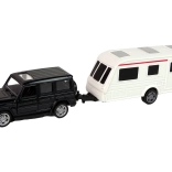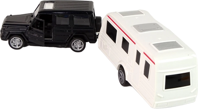 A játékautó és a lakókocsi modellt kényelmes használatra tervezték. A kisautó hátsó hajtással rendelkezik - csak hátra kell húzni és nézni, ahogy előre megy. Az SUV ajtajai nyithatók.