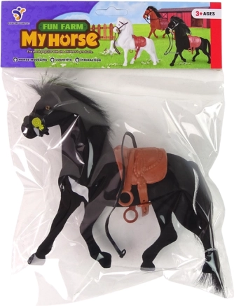 Realista és tapintásra kellemes fekete ló figura bársonyos felülettel és barna nyergel. Minőségi anyagokból készült, ideális 3 éves kortól, valamint a farmállatos gyűjtemények bővítéséhez.