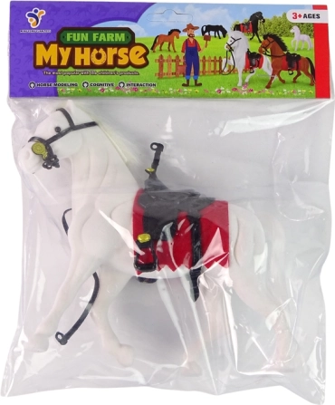 Ez a részletgazdagon kidolgozott fehér lófigura gyönyörűen kiegészít minden gyerekfarmot vagy istállót. Valósághű megjelenésével és kellemes tapintású anyagával hosszú játékra ösztönöz, fejleszti a finommotorikát és a fantáziát. A fekete nyereg és a piros nyeregalátét stílusos megjelenést kölcsönöz a lónak.