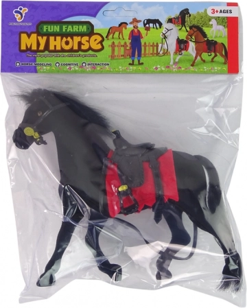 Aranyos, bársonyos fekete lófigura fekete nyereggel és piros nyeregalátéttel, amely örömet szerez a farmok és lovak kis rajongóinak. Minőségi, kellemes tapintású anyagokból készült, realista részletekkel, és ideális méretű 3 éves kortól.