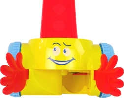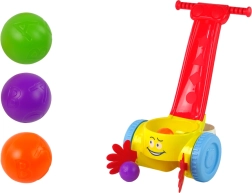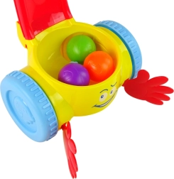 Ez a színes, mosolygós arcú gurítható kocsi sétára és aktív játékra motiválja a gyerekeket. A gyermek a fogantyún lévő nyílásba dobja a labdát, a játék megpörgeti, majd a labda kiugrik a padlóra – és máris lehet újra gyűjteni! A játék természetes módon fejleszti a nagymozgásokat és a finommotorikát, a szem–kéz koordinációt, valamint az egyszerű feladatok megoldását.