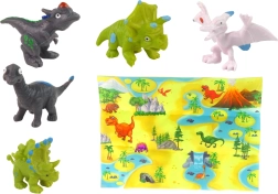 - 12× színes festhető tojás, 6× dinoszaurusz figura, 4× filctoll, 1× alátét a dinoszauruszok világával, 1× festőállvány
