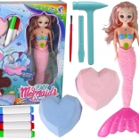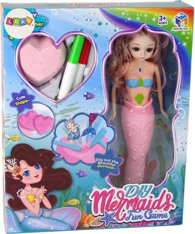 Ez a kreatív DIY készlet órákon át tartó szórakozást nyújt: először felfedezhetők a szív alakú „kövekben” rejlő kincsek, majd a mellékelt filcekkel feldíszíthető a tengeri sellő farka. A farok speciális textúrája könnyű festést tesz lehetővé, a színek vízbe áztatás után 3 órán belül eltávolíthatók, így a sellő újra dekorálható.
