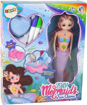 Fedezd fel a kreatív szórakozást a tengeri sellős DIY készlettel! A gyermek különleges filctollakkal díszítheti a farkat, megfésülheti a sellő hosszú haját, és kivájhat meglepetéseket a két szívecske alakú kőből a mellékelt véső segítségével. Vízbe merítve 3 órán belül a színek lemoshatók, így újra és újra festhető.