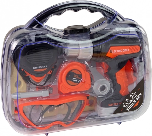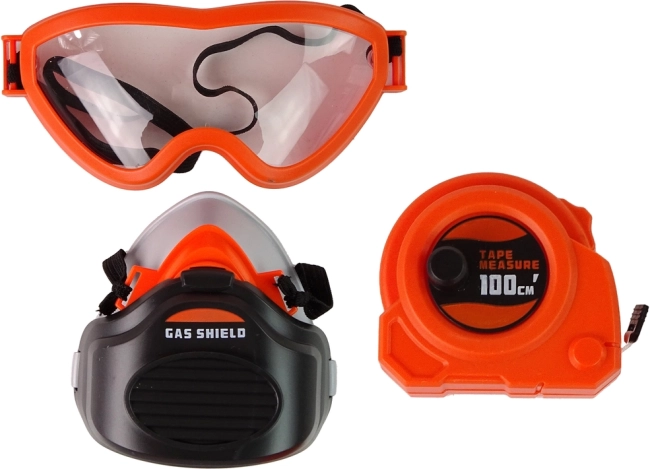 Az egész szerszámkészlet egy praktikus kofferben van tárolva. Tartalmazza a műanyag eszközöket, köztük az elemes fúrót, amely gombnyomásra forog és valósághű hangokat ad ki. A játék biztonságáért a készlet része a védőszemüveg és maszk is. Található benne egy kis mérőszalag és fűrész a precíz munkához. Minden alkatrész úgy lett tervezve, hogy segítse a gyerekeket a manuális készségek elsajátításában és gyakorlásában.
