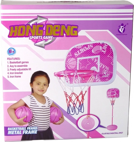 A készlet része egy rózsaszín kosárlabda és egy pumpa a kényelmes labdafelfújáshoz.