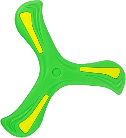 A bumeráng tányérformájú, három lekerekített karral egy irányba mutat. Könnyű habból készült, ami lehetővé teszi, hogy könnyen röpüljön a levegőben. Kompakt méretének köszönhetően könnyen berakható táskába vagy hátizsákba. A dobás hatótávja 6-8 méter!