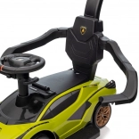 Ez a LAMBORGHINI ikonikus sportautója által ihletett járgány feltűnő dizájnnal, masszív kivitelével és a mindennapi használatot megkönnyítő praktikus elemekkel hódít. A vezetőrúddal a szülők könnyedén és biztonságosan irányíthatják, míg a védőkorlát és a lábtartók stabil ülést biztosítanak a kisebb gyermekek számára is.