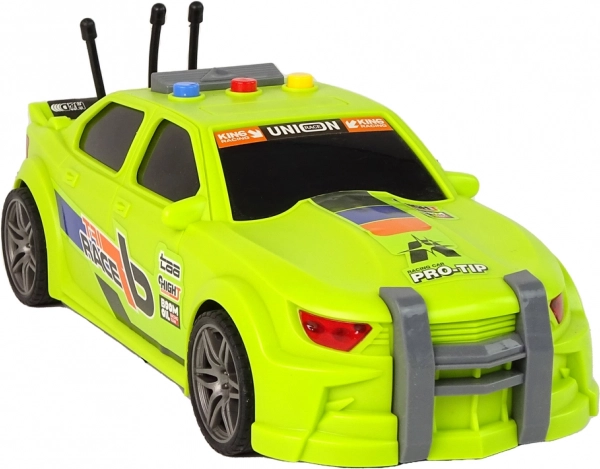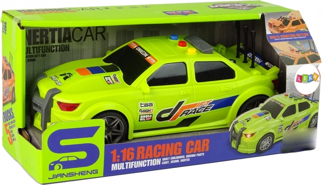 Lépj be a sebesség és a szórakozás világába az 1:16 méretarányú versenyautóval. Gombnyomásra lejátsza a motorindítás hangját és egy dinamikus dallamot, miközben felvillannak a fényhatások. Elég meglökni, és az inerciális meghajtásnak köszönhetően bonyolult irányítás nélkül is elindul.