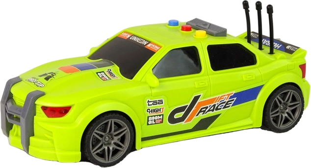 A masszív műanyag felépítés, a biztonságosan lekerekített élek és a figyelemfelkeltő „Drift Race” versenymatricák nagyszerű ajándékká teszik ezt a modellt a kis versenyzők számára. Az autó ideális otthoni játékhoz és kint, sima felületen is, és rengeteg akciódús szórakozást nyújt.