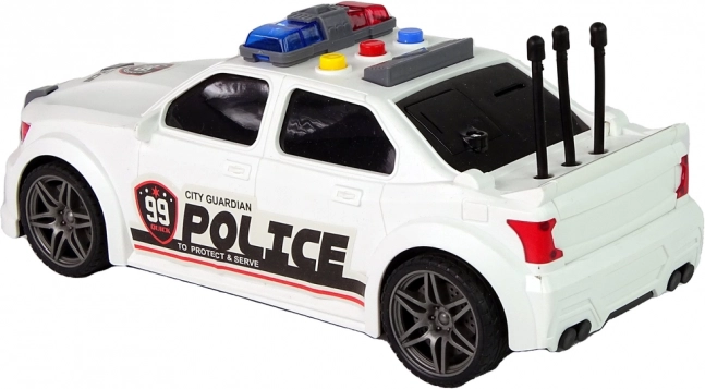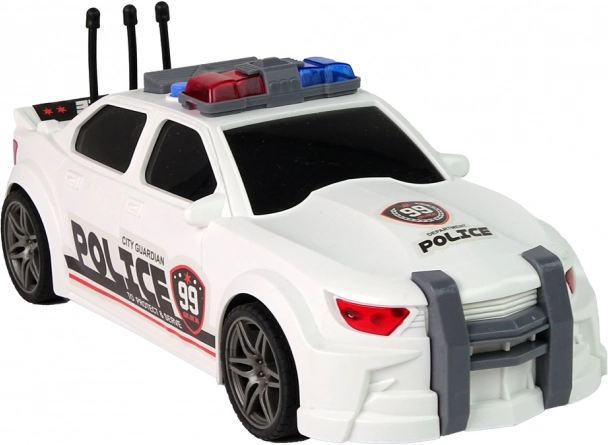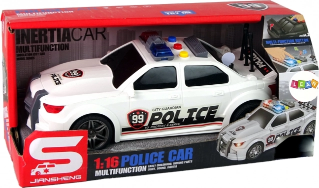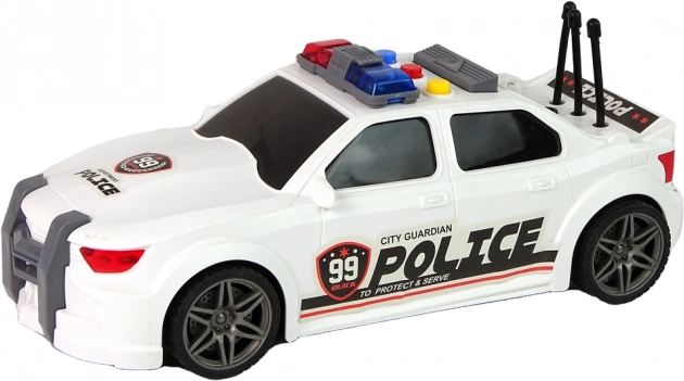 Fehér rendőrségi sportautó 1:16 méretarányban rengeteg akciót és fantáziát kínál a gyerekeknek. Aktiválás után motorindítás hangjával, rendőrségi szirénával és a gyors vezetés effektjeivel örvendeztet. A részletgazdag rendőrségi matricák és a tartós műanyag kivitel remek ajándékká teszik a kis rendőrök számára. Új termék, eredeti csomagolásban.