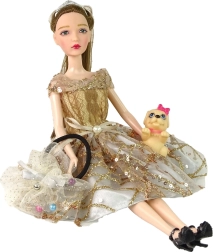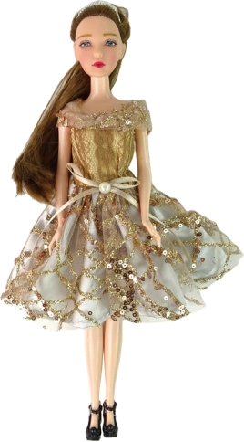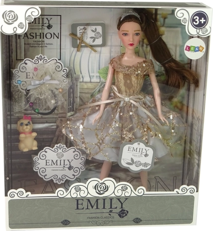 Fedezd fel a divat világának varázsát az EMILY babával! Csillogó arany ruhája derékmasnival, ápolt frizurája és díszes fekete cipőcskéi elegáns társsá teszik a mindennapi játékhoz. Kék szemei és finom részletei élethű, bájos megjelenést kölcsönöznek.