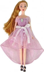 Csillogó ruha, gyöngyök, masnik és tiara varázsolják mesévé a játékot. A rózsadísszel ellátott stílusos cipők kiemelik az elegáns öltözéket.