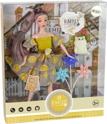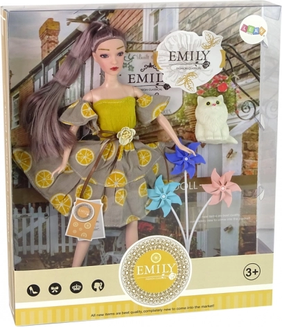 Fedezze fel a varázslatos kreatív játékszettet – Emily baba három szélforgóval és egy aranyos kiscicával. Fejleszti a képzeletet, a szociális készségeket, és végtelen szórakozást kínál. A babának ízületes végtagjai vannak, hosszú haja és citrusmintás ruhája, a kiscica megnyomásra sípoló hangot ad ki.