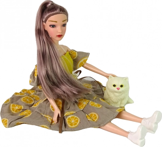 A szett része egy fehér kiscica is, amely megnyomásra sípol – a játék így még élethűbb és szórakoztatóbb. A baba karjaival, lábaival és fejével is mozog, ami természetes pózolást és a finommotorika fejlesztését teszi lehetővé.