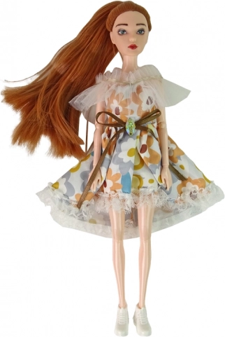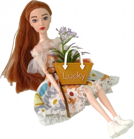 Fedezze fel az ősz varázsát az EMILY babával – elegáns baba hosszú hajjal és zöld szemmel, fehér ruhában, finom virágmintával, csipkével és masnival. A könnyű tornacipők lezser megjelenést kölcsönöznek, a kiegészítő barna kézitáska pedig kiemeli a stílust.