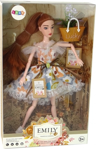 Ragyogóvá teszi a gyerekjátékokat a EMILY baba hosszú hajjal, finom virágmintás ruhával és stílusos kézitáskával. A körülbelül 30 cm magas baba támogatja a kreatív fésülést, a képzelet fejlesztését és a szerepjátékot. Ajándéknak is kiváló 3 éves kortól, szép dobozban csomagolva.