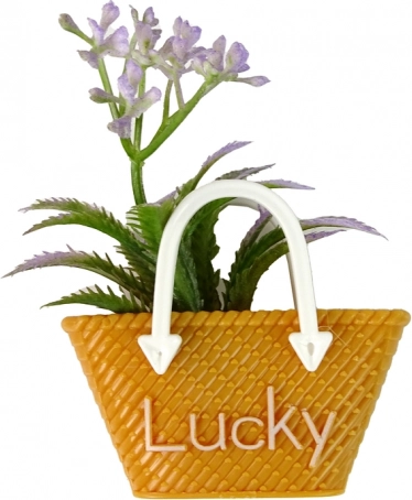 - Gazdag tartozékok: kézitáska és dekoratív virágok a stílusos jelenetekhez.