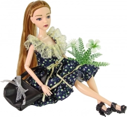 EMILY divatbemutató baba kézitáskával és virágokkal