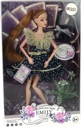 A stílusos EMILY baba minden divatkedvelőnek örömet szerez. Hosszú, fésülhető haja van, mozgatható végtagjai a valósághű pózoláshoz, és elegáns, virágmintás ruhát visel. A szett része egy fekete kézitáska és dekoratív virágok a kreatív játékhoz. A minőségi anyagok és kivitelezés hosszan tartó szórakozást biztosít.