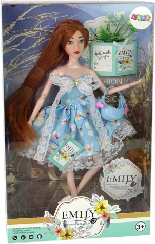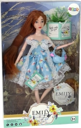 Emily baba friss, tavaszi hangulatot hoz a játékba. Hosszú vörös haja tökéletes fonások és kreatív frizurák gyakorlására, míg zöld szemei egyedi megjelenést kölcsönöznek neki. A finom virágmintás kék ruha szívecskés csipkével és aranyos masnival emeli ki stílusát. A fehér sportcipők laza hangulatot adnak minden kalandhoz.