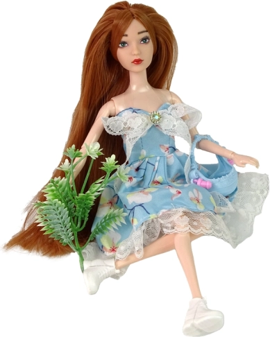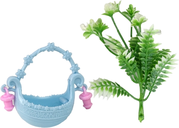 Az elegáns kék táska és a virágok varázst kölcsönöznek minden jelenetnek, és támogatják a szerepjátékot.