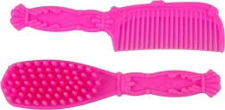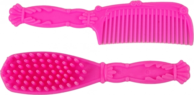 A barna ló gyönyörű rózsaszín nyeregkápával és hosszú sörénnyel rendelkezik, amelyet a mellékelt kefével és fésűvel fésülhetsz.