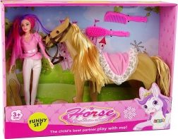 Lépj be a fantázia világába a lovagló babával és gyönyörű barna lovával. A baba karjai és lábai hajlíthatók, így különböző pózokba állítható, akár áll, akár a lovon ül. Stílusos, tipikusan lovas öltözéke hitelességet kölcsönöz a játéknak.