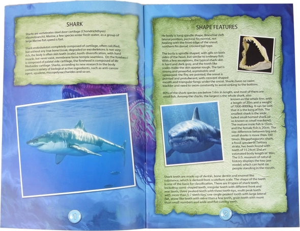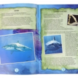 Az angol nyelvű cápa relikviák útmutató is része a csomagnak a tudás bővítése érdekében.