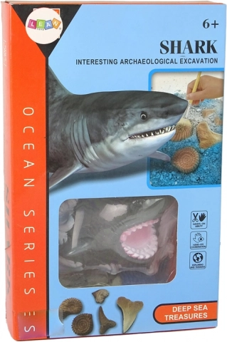 Tapasztalja meg az ősi idők felfedezésének izgalmát ezzel az óceán központú átfogó készlettel. Fedezze fel a rejtett kincseket, mint például a fosszilizált trilobiták egy cápaszikla belsejében. A készlet egy tudományos útmutatót is tartalmaz a cápákról angolul, amely bővíti a fiatal kutatók ismereteit.