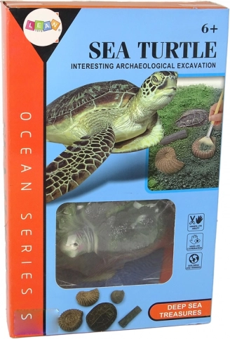 Teljes oktatási készlet a víz alatti világ és a régészet szerelmeseinek. A 14 cm x 11 cm-es valósághű teknőskövületen belül rejtett ásatások találhatók, mint például ammoniták.