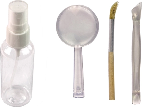 A készlet tartalmaz egy vizes palackot, precíziós ecsetet, nagyítót és ásóeszközt, mindent a tökéletes kis archeológus számára.