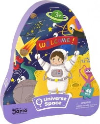 Az összeállított puzzle mérete 50 cm x 34 cm és tele van élénk színekkel, amelyek vidám és energikus légkört teremtenek. A puzzle segíti a kézügyesség és koncentráció fejlesztését, miközben a gyerekek élvezik az űr felfedezését.