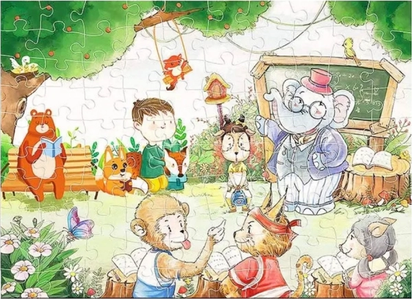 A Állati Iskola 100 darabos puzzle lenyűgöző betekintést kínál az állatvilágba, ahol egy elefánt tanárként gondoskodik diákként az állatokról. Ez az oktató grafika mérete 52 cm x 37,8 cm, ami segít gyermekeknek megismerési képességeiket és kreativitásukat fejleszteni, miközben felfedezik az állati környezetet.