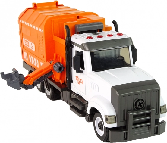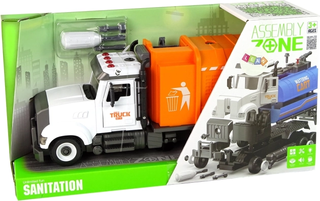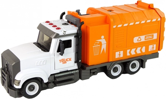 Az interaktív, csavarozható kukásautó narancs–fehér kivitelben valósághű játékot és tanulást kínál a gyerekeknek. Kínál fényeket és hangokat, lendkerekes meghajtást, nyitható ajtókat és mozgatható kukaemelőt. A csomagban csavarhúzó cserélhető fejekkel található a szétszereléshez és összerakáshoz, ami fejleszti a finommotorikát és a kreativitást. 3 éves kortól ajánlott.