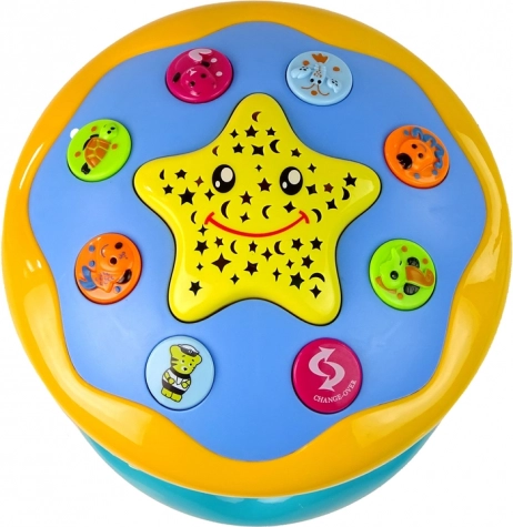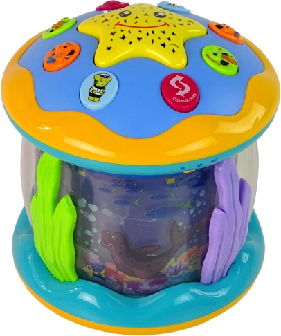 Ez az interaktív éjjeli lámpa projektorral csillagos égboltot vetít a mennyezetre, és biztonságos hangulatot teremt a nyugodt alváshoz. A megvilágított 3D motívumok tengeri állatokkal nappal lenyűgözik a gyerekeket, este pedig dallamok és finom fényhatások nyugtatják meg őket. A mosolygó csillag gomb egyetlen megnyomásával aktiválhatja a csillagos égbolt vetítését.