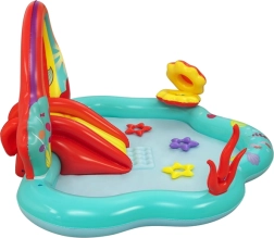 A Kis hableány témájú felfújható vízi játszótér a kertedet mesebeli világgá változtatja. Számos funkcióval és tevékenységgel ideális hely a játékhoz és a hűsöléshez.