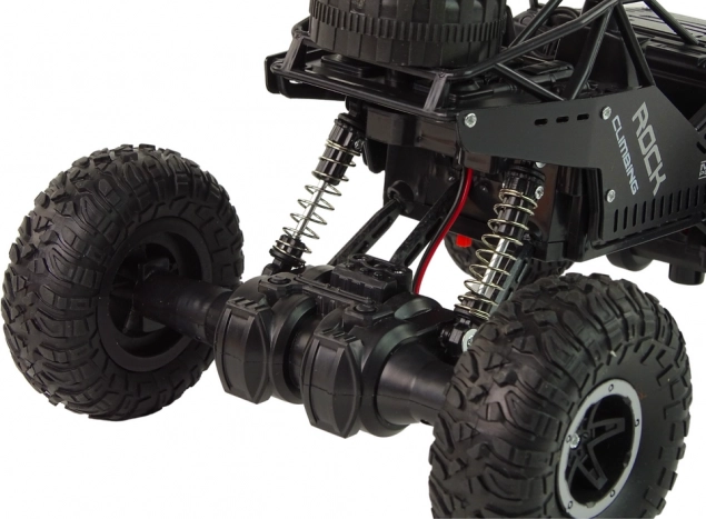 A kerekeken látható rugók nemcsak valósághűséget adnak, hanem jobb stabilitást és csillapítást is biztosítanak egyenetlen talajon, ami alapvető a terepjáróknál.