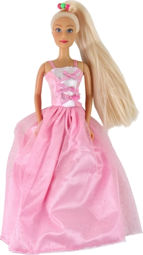 Hosszú, rózsaszín báli ruhát visel, amelyben igazi hercegnőnek tűnik. A felső részt fehér masnik díszítik, amelyek elegáns hatást keltenek, az alsó rész rózsaszín, finom csillogással, amely gyönyörűen ragyog a fényben.