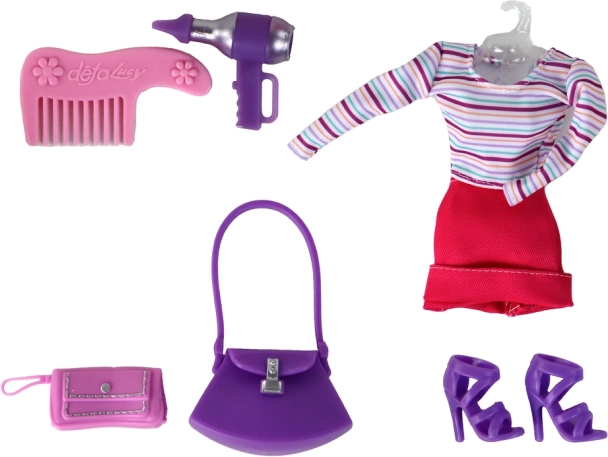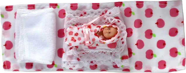 Lucy baba és ruhái mellett a készlet tartalmaz egy nagyobb gyermeket barna hajjal és aranyos piros pöttyös ruhába öltözetve. Ez a szett lenyűgöző elemet kínál a gondoskodásra és a gyerekek képzeletének fejlesztésére az anyaság szimulációján keresztül.