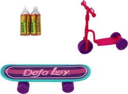 Bemutatjuk a babakészletet, amely kreatív és interaktív élményeket hoz a gyerekeknek. Ez a színes kollekció két babát tartalmaz: egyik nagyobb lila sisakkal, és egy kisebb gyerek baba rózsaszín sisakkal. A babák nagyszerű kiegészítői a rózsaszín roller és a türkiz gördeszka. A gyerekek órákig tartó szórakozást élvezhetnek egyedi történetek és jelenetek kitalálásával.