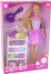 Divatbaba Lucy lila ruhával és kiegészítőkkel