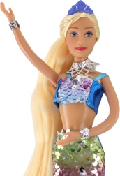 A baba szintén elegáns nyakláncot visel a nyakában, gyönyörű karkötőt a csuklóján és koronát a fején. Ezek az elemek varázst adnak neki, és a valódi mesebeli sellő képét keltik. Sellő babánkkal beléphet a mesék és álmok varázslatos világába.