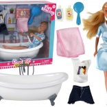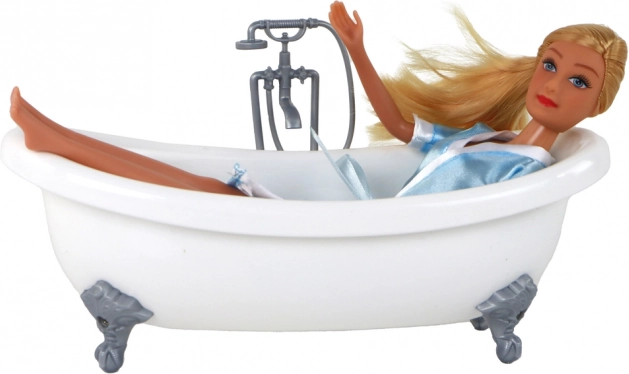 Stílusos fehér kád fémes hatású lábakkal, amely minden játékot wellness élménnyé varázsol. Tökéletes relaxációs jelenetekhez és a babáról való gondoskodáshoz.