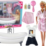 Ez a fürdőkészlet mindent kínál, amire a gyerekeknek szükségük van a valósághű játékhoz: elegáns fehér kád lábakkal, hosszú szőke hajú baba, amely könnyen fésülhető, valamint számos kiegészítő az ápoláshoz és a stílushoz. A kék köntös kényelmet és sikket ad a babának, így készen áll a pihenésre és a szórakozásra.