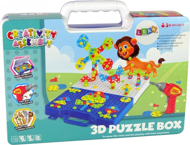 Építs saját 3D dinoszauruszokat ezzel a szórakoztató DIY építőkészlettel. Nem hiányzik a praktikus hordtáska, a játék fúrógép, a csavarhúzó és a színes csavarok. Fejleszti a kreativitást és a finommotorikát, 3+ éves gyerekeknek megfelelő, megfelel a CE és EN71 előírásoknak.
