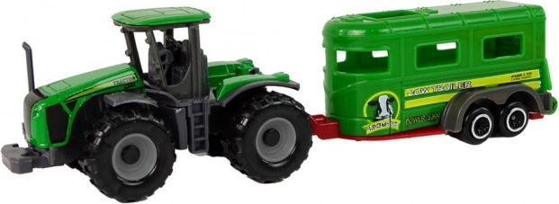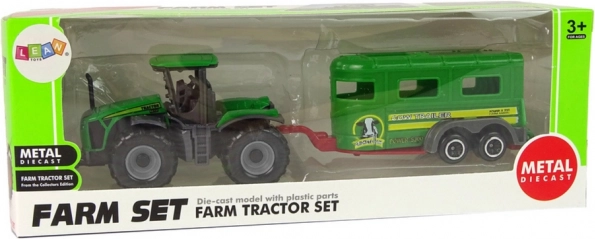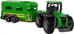 Ez a készlet zöld traktort és hozzáillő pótkocsit kombinál a farmos kalandokhoz otthon és útközben. A kompakt méretek jól illeszkednek a gyerekek kezébe, és fejlesztik a képzelőerőt valamint a finommotorikát. A masszív műanyag szerkezetnek köszönhetően a játék ellenáll a mindennapos használatnak.