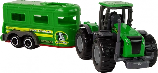 A traktor mérete 8 × 4,5 × 4 cm, a pótkocsié 9 × 4 × 3 cm. A teljes szerelvény 17 × 4,5 × 4 cm, csomagolása 21 × 7,5 × 5 cm. A játék rendelkezik CE jelöléssel, megfelel az EN71 szabványnak, és 3 éves kortól ajánlott.