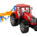 A játék minőségi, tartós műanyagból készült, élethű abroncsokkal és feltűnő színkivitelben, amely felkelti a gyerekek figyelmét. A szett támogatja a fantázia fejlődését, a finommotorikát és a mezőgazdasági gépek megismerését.