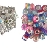 A csomag harminc műanyag gyöngyöt és hatvan ezüst- és aranyszínű gyöngyöt tartalmaz vidám motívumokkal. Kreatív és egyedi karkötők készítéséhez készült.
